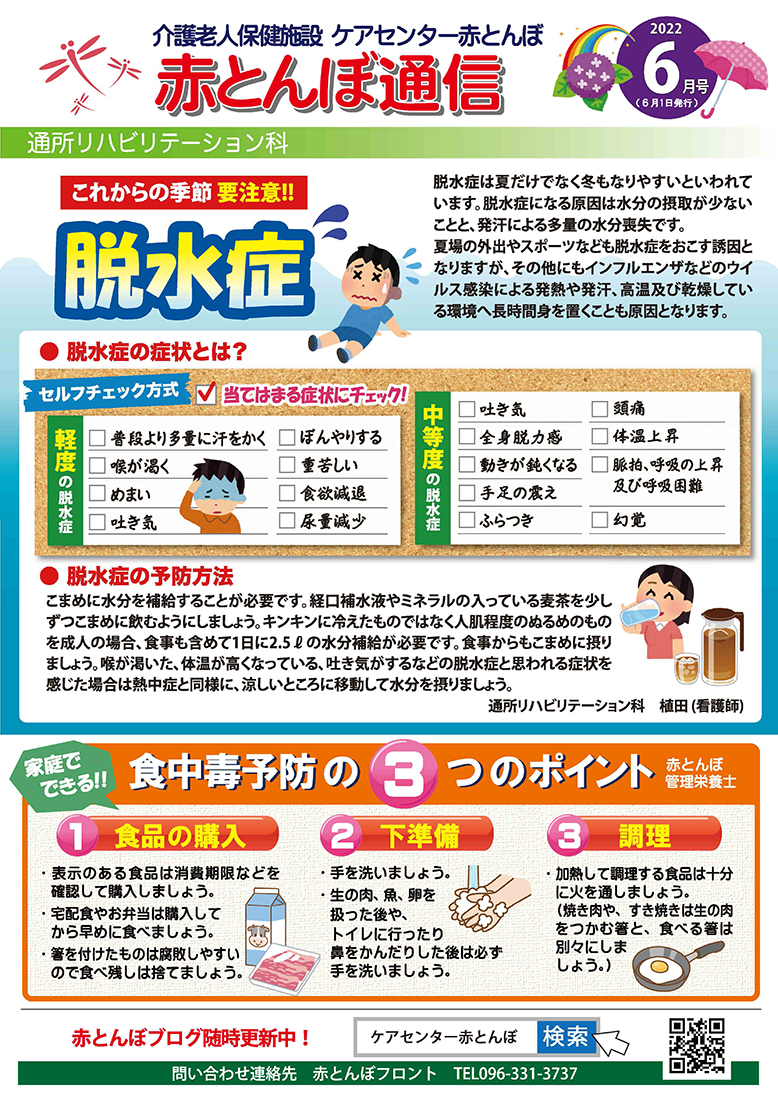 ケアセンター赤とんぼでは、利用者さんとそのご家族、地域と介護の現場をつなぐコミュニケーションツールとして、毎月「赤とんぼ通信」を発行しています。今月は下記の内容でお送りします。