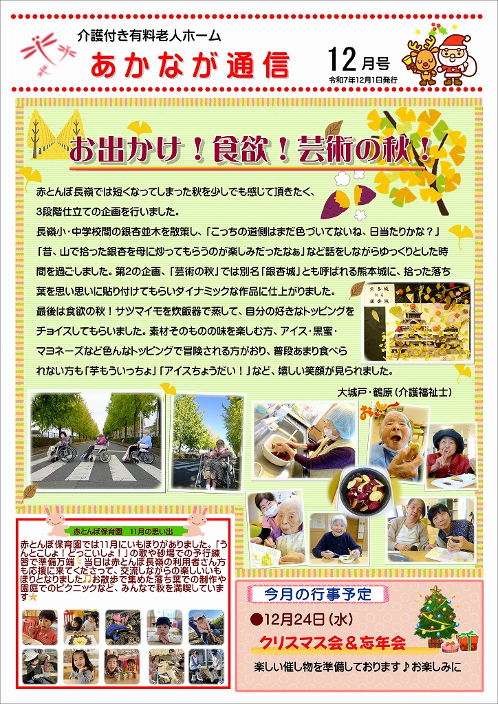 赤とんぼ長嶺「あかなが通信12月号」を発行しました。