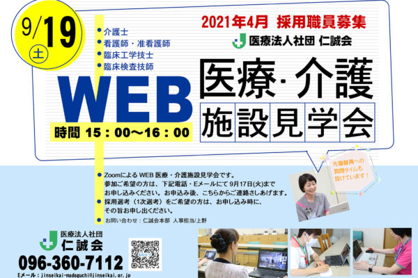 9/19(土)の 「仁誠会 医療・介護 施設見学会」WEBにて開催いたします。 熊本でもまだ新型コロ...
