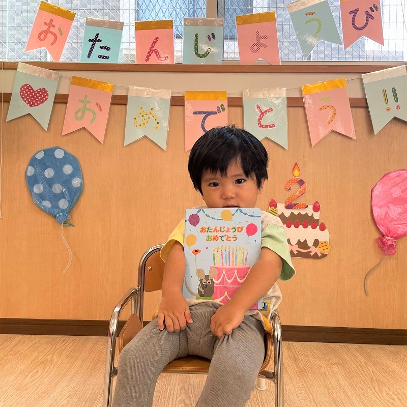 お友だちからのハッピーバースデイの歌のプレゼントでは笑顔も見られました♪